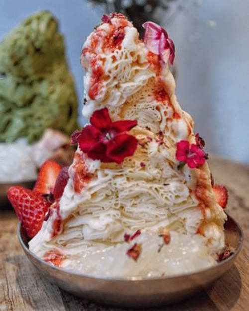 Look at that beautiful volcano. Admire it, now imagine it in your mouth. This beautiful dessert is made up of layers of shaved ice. Pour some condensed milk in it, add toppings, syrups. Live it up. It’s like a snow cone but korean; and better.
